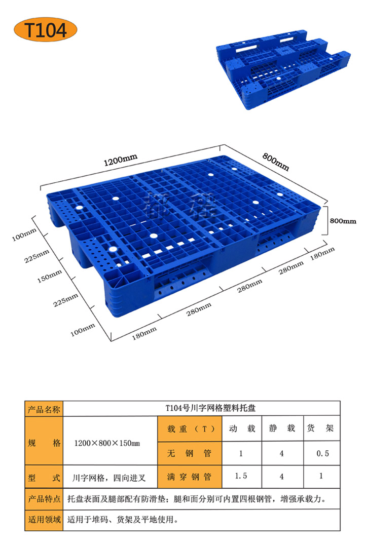 • T84-1210內(nèi)置鋼管川字網(wǎng)格塑料托盤